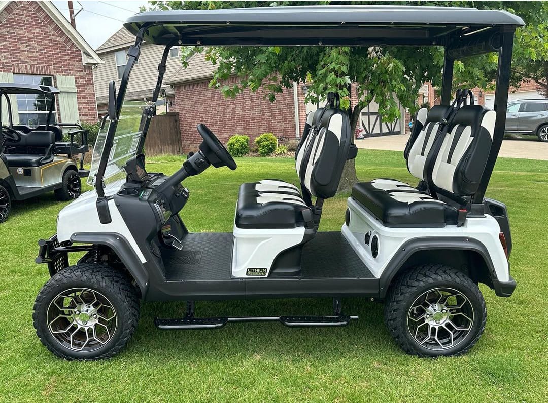 The 2024 Evolution Maverick Golf Cart 2+2 in white is competitively priced, with models starting around $8,990 to $9,995, depending on the dealer and included features. It’s available through authorized Evolution dealers and can be shipped nationwide.