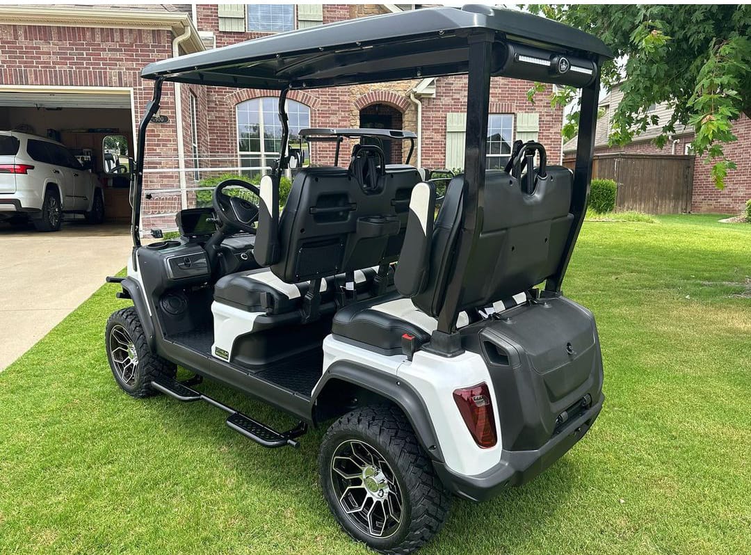 the 2024 Evolution Maverick Golf Cart 2+2 in white represents a significant leap forward in electric vehicle technology for personal transportation. Its combination of style, performance, and advanced features makes it an attractive option for those seeking a versatile and modern golf cart experience.