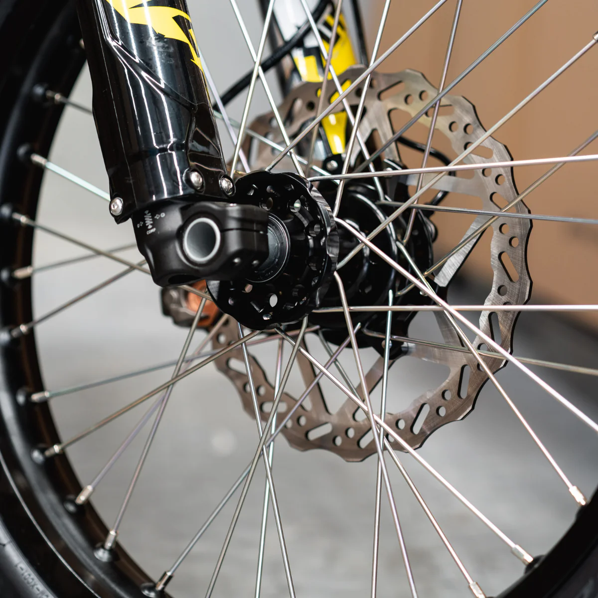 The Ultra Bee R features 19″ wire-spoked rims with off-road tires, providing excellent traction and durability. The hydraulic disc brakes (240 mm) on both the front and rear wheels ensure reliable stopping power, enhancing safety and control[1].
